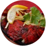 Saftig lax marinerad i yoghurt, citron och våra hemlagade tandoorikryddor, grillad till perfektion och serverad fräsande på varm järnplatta med grönsaker